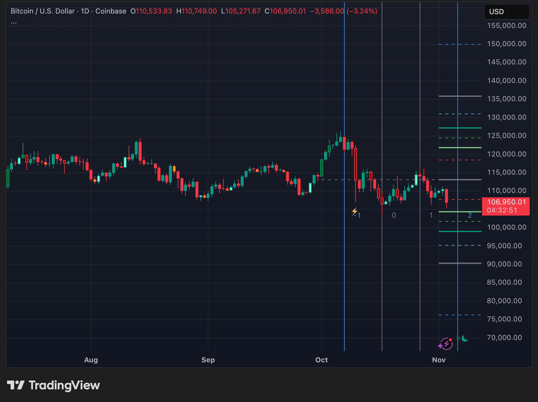 分析显示,11 月 3 日比特币下跌 3.24% 至 106,950 美元,而以太坊跌幅更大,下跌 7.13% 至 3,627 美元。