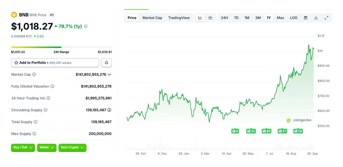 最近,BNB 价格突破 1,000 美元,创下历史新高,标志着其从 2022 年的低迷中大幅复苏。熊市