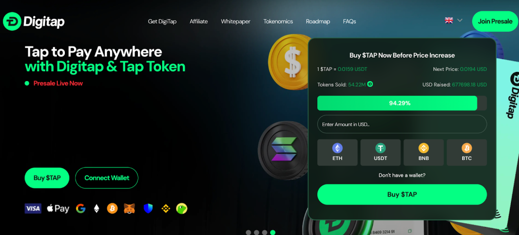 当前预售价格为 0.0159 美元。下一阶段将升至 0.0194 美元,涨幅达 22%。对于任何关注该项目早期阶段的人来说,这都是一个显著的涨幅。分析师还指出,以支付为重点的加密货币历来是牛市期间最具爆发力的加密货币之一。Digitap 将自身定位为一个真正的实用平台,该项目已成为……的有力竞争者。现在最值得购买的山寨币.