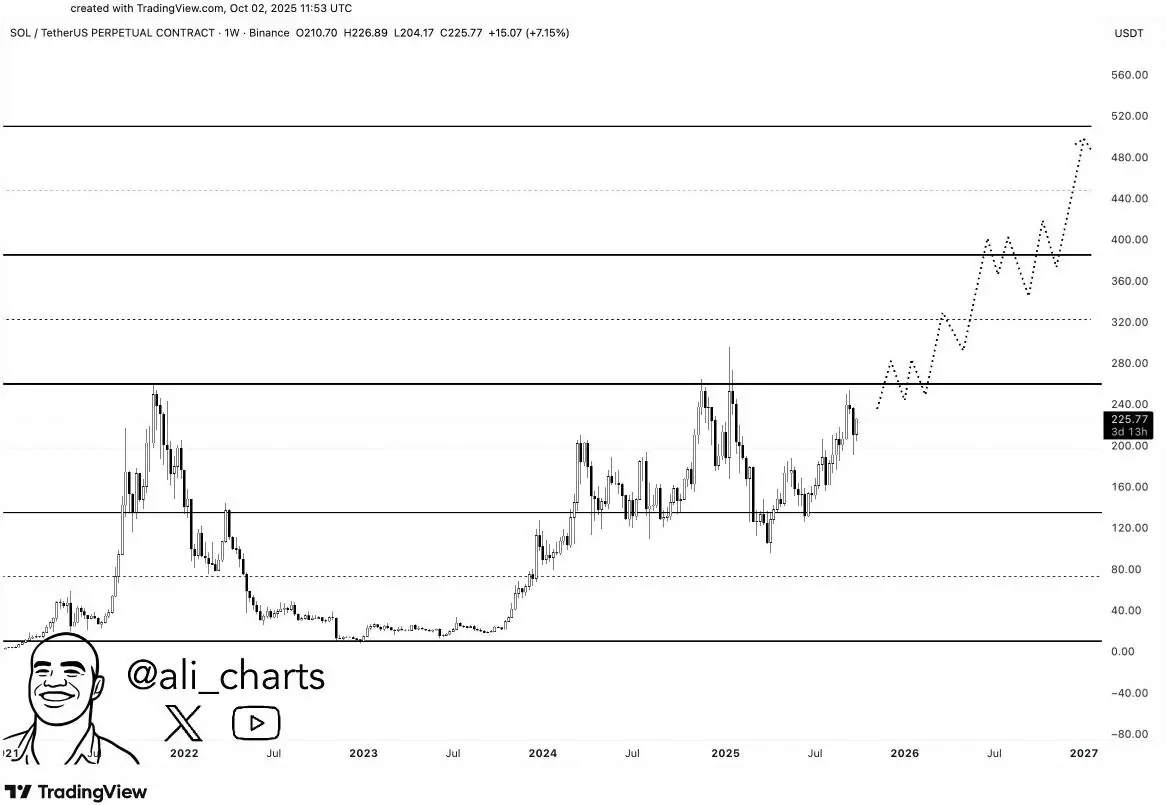 Solana 的价格势头强劲,突破 250 美元大关,实现了惊人的反弹。Ali 等分析师预测,突破 260 美元将引发 Solana 价格飙升至 520 美元,几乎是当前价格的两倍。