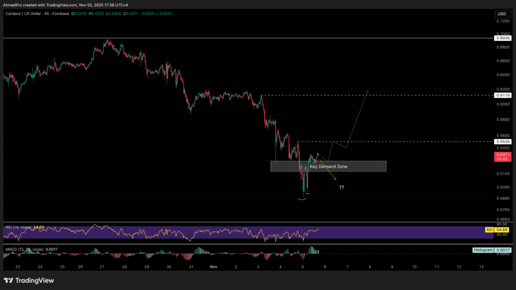 ADA的股价已跌至关键需求区域,该区域此前曾多次反弹。如果股价保持在0.50美元以上,则很有可能回升至0.70美元至0.80美元区间。