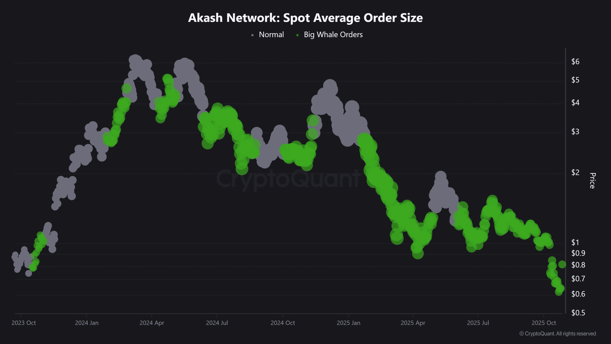 例如,根据 CryptoQuant 的数据,AKT 10 月份的持续回调以现货市场上的巨鲸订单为标志。