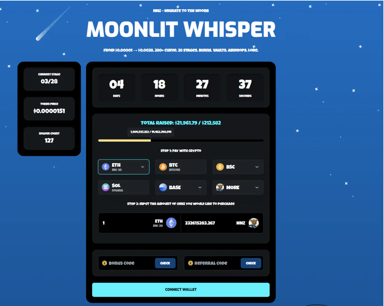 | Noomez($NNZ) | 预售第三阶段 | 0.0000151美元 | 具有自动销毁功能和可见进度跟踪的通缩式预售 | 在下一轮价格上涨之前,仍有强劲上涨空间。 |