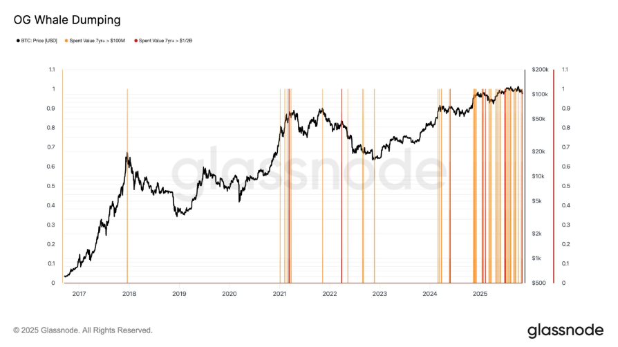 K33 Research指出,持有6至12个月的31.9万枚比特币已进入获利回吐阶段。该公司还报告称,过去一个月里,“超级巨鲸”抛售了价值约450亿美元的比特币。分析师认为,这是早期持有者大规模、有组织的退出。