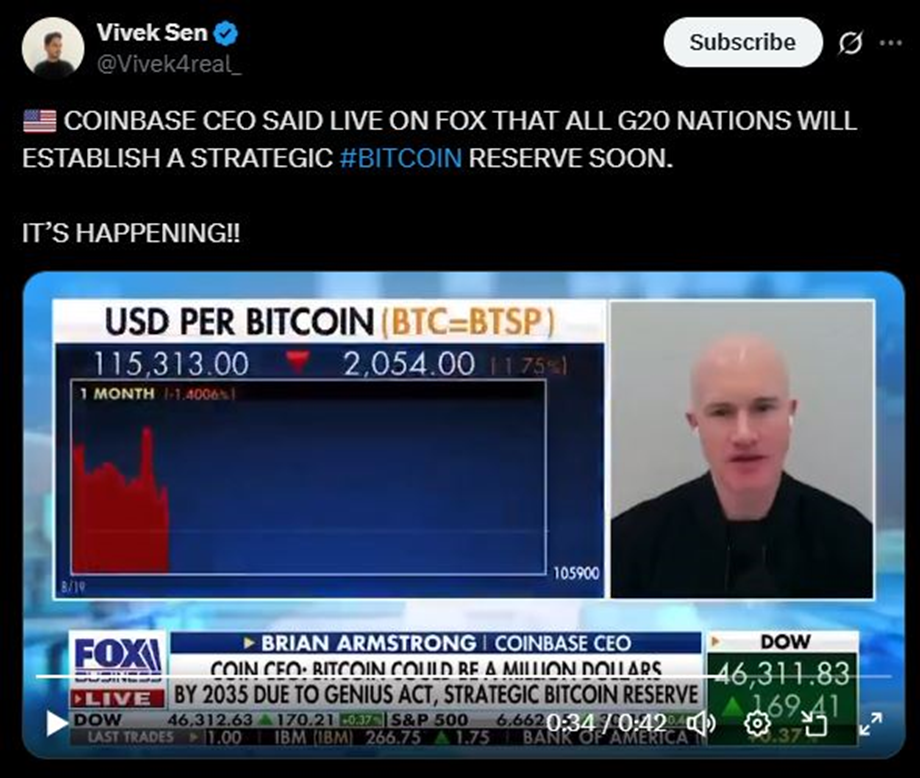 Coinbase 首席执行官 Brian Armstrong 在最近的一次采访中指出,美国正在重新考虑建立比特币战略储备的想法。
