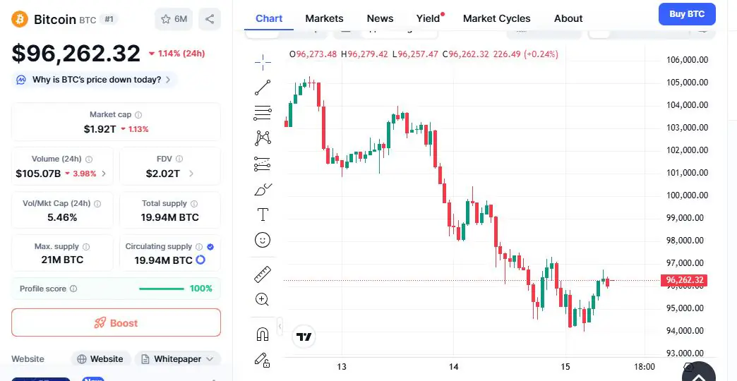 比特币价格预测,此前比特币价格跌至 95,000 美元