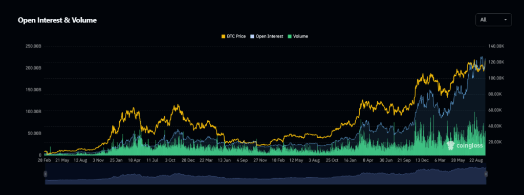 价格结构和未平仓合约的一致性让许多交易员感到信服。迄今为止,每次上涨之后都出现了适度的回调,一些人认为这是健康的盘整,而非崩盘。不过,此前高点上方的区间流动性较弱;该区域的波动往往迅速而剧烈。