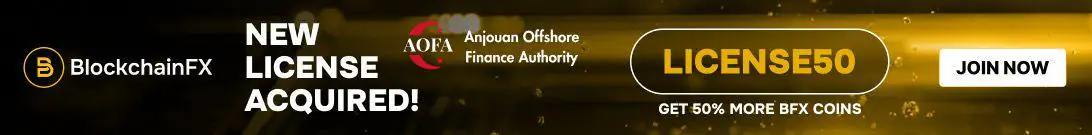 查看 BlockchainFX 预售信息,并使用代码 LICENSE50,即可在下次价格波动前额外获得 50% 的 BFX。