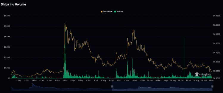 一个主要指标当谈到柴犬时是未平仓合约。这一追踪模因币未平仓合约总数的指标与价格一起大幅下跌,并达到了九个月以来的最低水平。