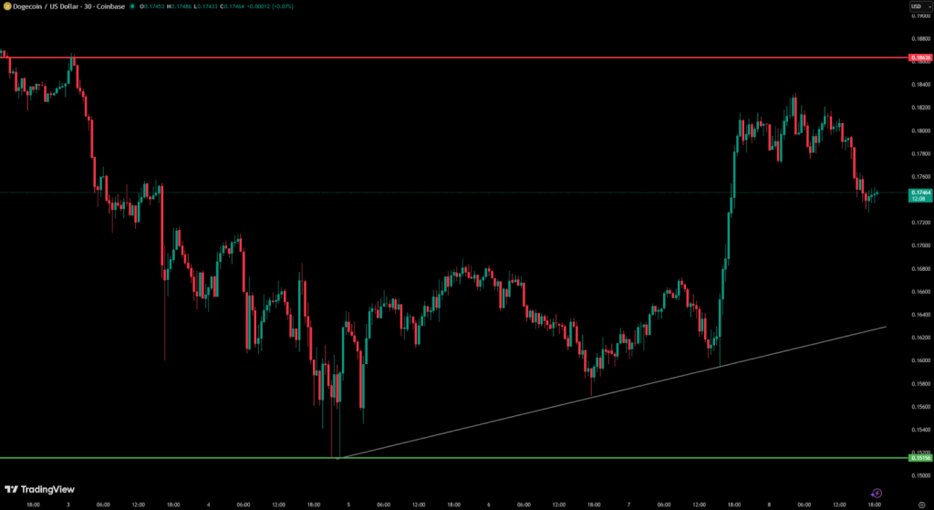 随着狗狗币接近重要的 0.186 美元阻力位,价格图表上的结构正转为看涨。如果狗狗币能够突破并守住这一水平,上涨势头可能会增强,推动价格进一步走高,向 0.21-0.23 美元区域迈进。