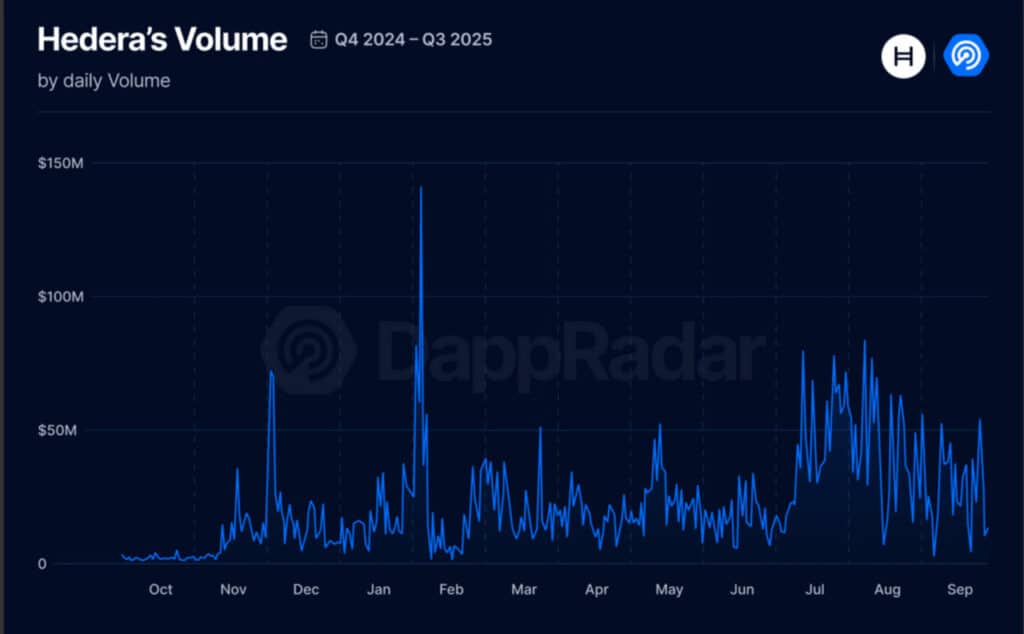 这一增长也推动了 DeFi 活动,Hedera 的总锁定价值 (TVL) 同比增长一倍,超过 2 亿美元,证明即使在动荡的市场中,该网络的吸引力也在不断增强。