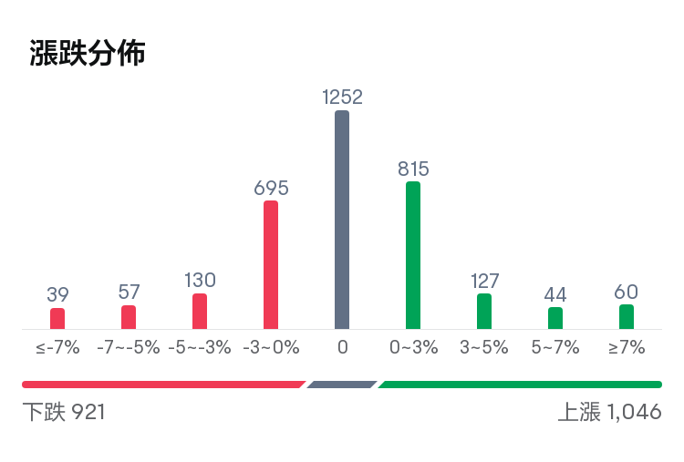 截至午间收盘,港股上涨1046只,下跌921只,收平1252只。