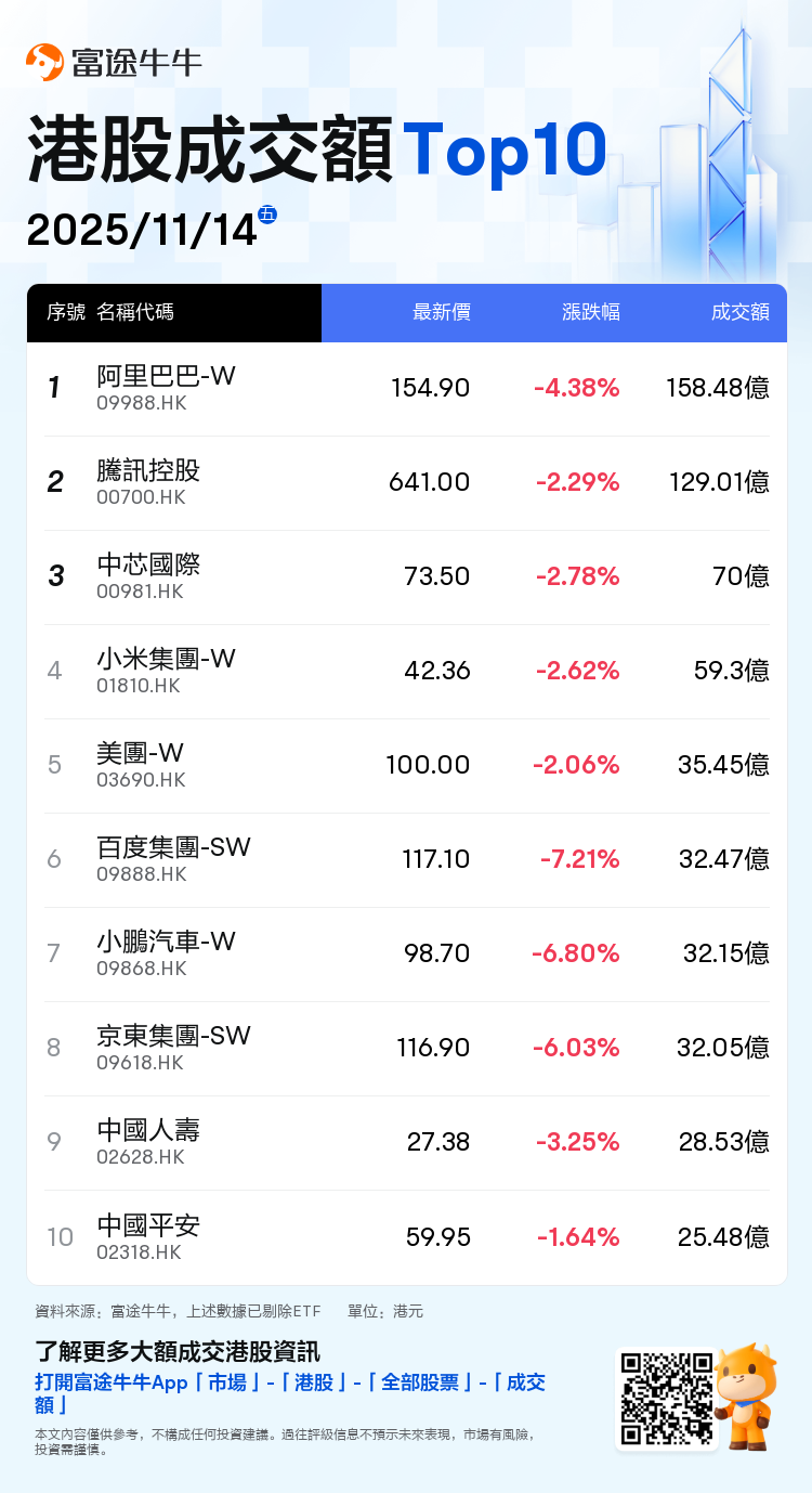 证券及经纪股多股下行,OSL集团跌6.12%,广发证券跌4.33%,中国银河跌4.07%,中金公司跌3.63%,华泰证券跌3.32%,国泰君安国际跌3.01%,德林控股跌1.63%,国泰海通跌1.26%。