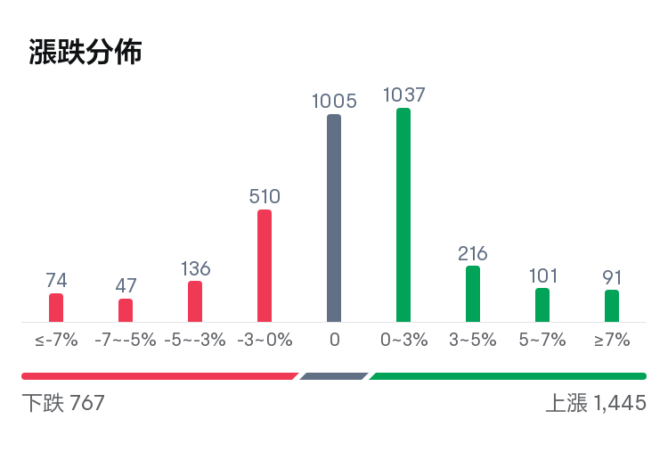 截至收盘,港股上涨1445只,下跌767只,收平1005只。