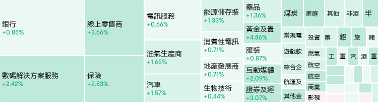 证券及经纪股普涨,华泰证券涨5.24%,广发证券涨4.63%,中国银河涨3.55%,国泰海通涨3.17%,中信建投证券涨2.73%,中金公司涨1.77%。
