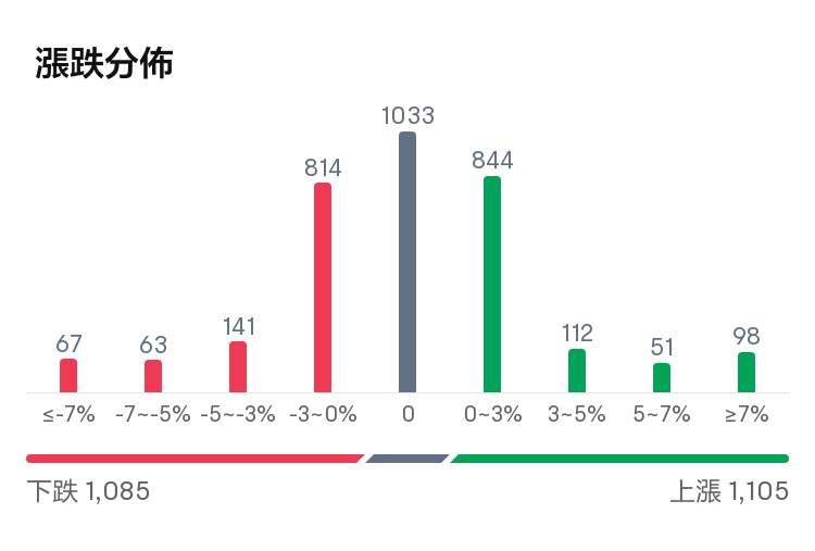截至收盘,港股上涨1105只,下跌1085只,收平1033只。