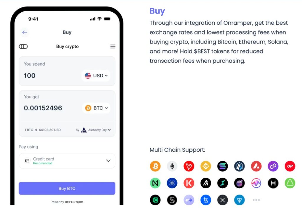 交易者可以轻松上手,因为该平台支持超过 100 种法币。对于管理多个钱包的用户,Best Wallet 的多链兼容性让他们能够轻松地跨不同区块链导入和管理钱包——所有操作均可通过一个统一的界面完成。
