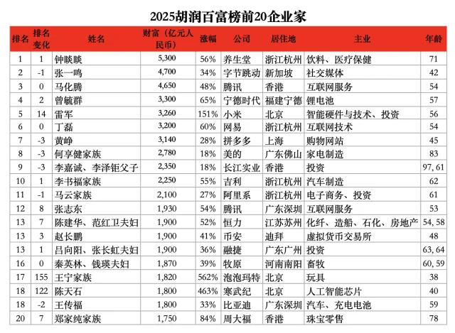 在最新发布的《2025胡润百富榜》中,最大加密货币交易所币安创始人——赵长鹏的名字排在十分显眼的位置,他以1900亿元财富位列榜单第13位。