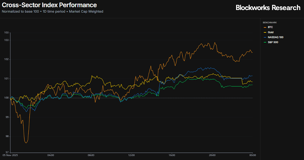 乐观情绪部分源于最高法院就特朗普关税合法性举行的听证会,提高预期有些内容可能会被撤回。赔率法院维持关税的决定在卡尔西(Kalshi)的股价中从 45% 跌至 29%,提振了风险资产的整体情绪。