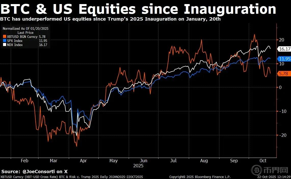 要点在于:当前并非崩盘,而是一次重新校准。比特币今年表现不佳并非源于基本面,而是受资金轮动以及成熟资产类别自然波动所致。