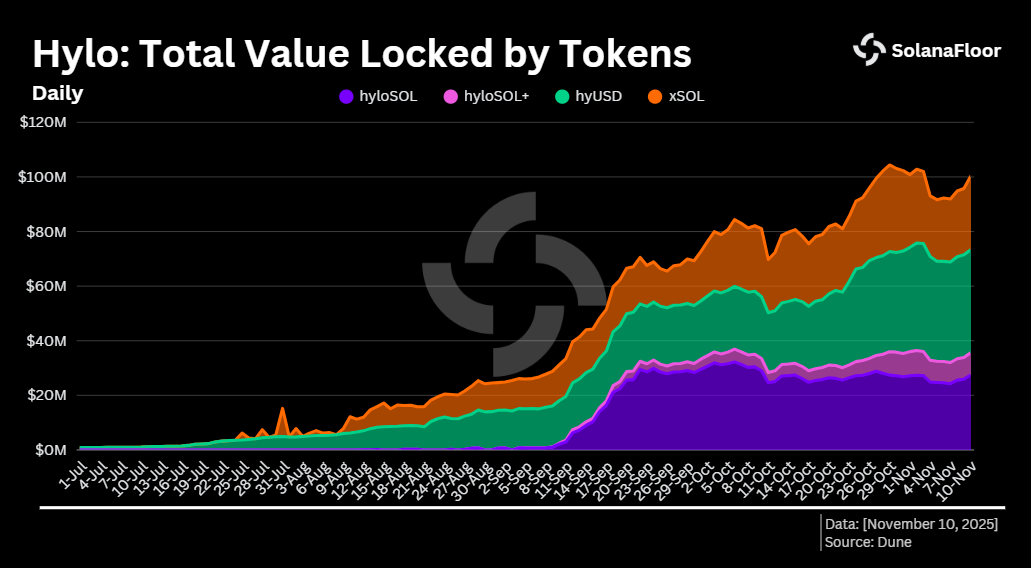 根据 链上数据Hylo的总锁定价值从8月初的约560万美元增长到三个月内的超过1亿美元。该协议目前已运行超过六个月,其大部分增长发生在2025年第三季度。
