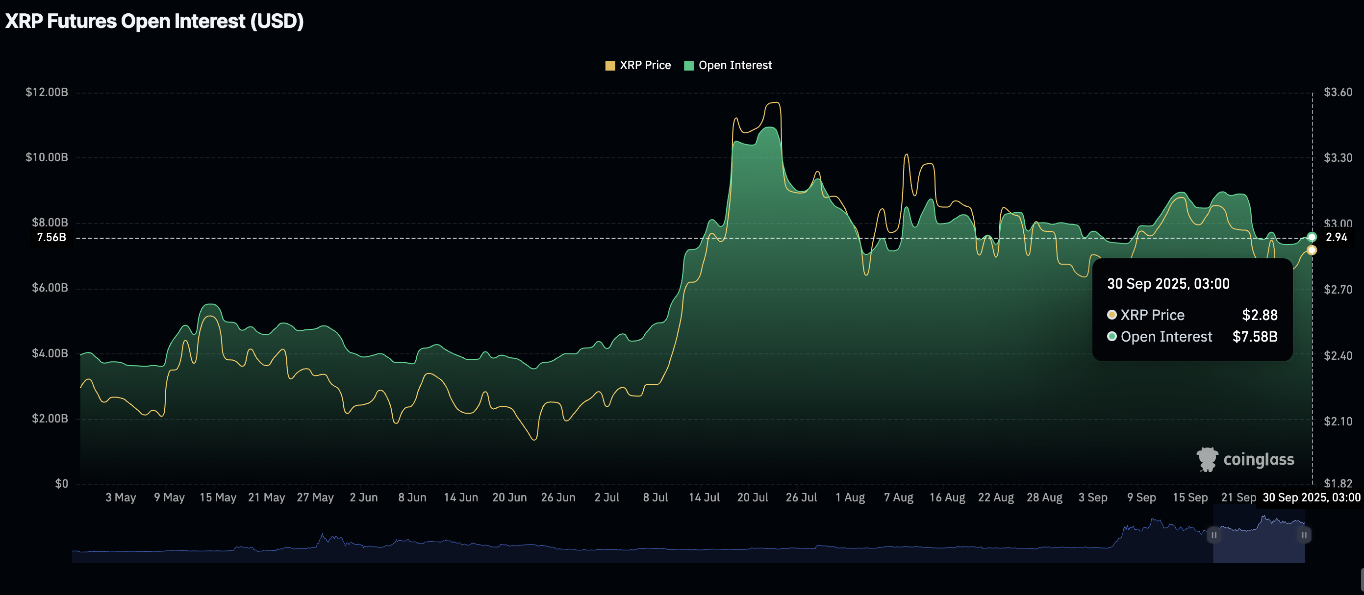XRP 未平仓合约 | 来源:CoinGlass