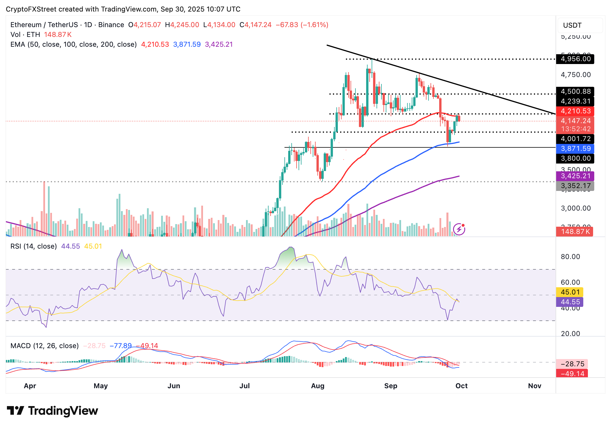 关键移动均线提供了支撑位:100日均线位于3,871美元,200日均线位于3,425美元,两者均表明中期技术面看涨。因此,突破50日均线可能再次确认多头,并奠定以太坊价格有望向中期目标 4,500 美元迈进,随后创下 4,956 美元的历史新高。