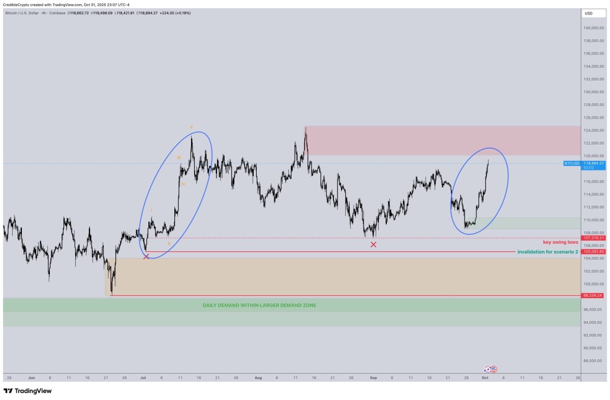 加密货币分析师 CrediBULL Crypto 对比特币最近的[飙升]发表了评论,并表示市场是否会面临回调或继续走高尚不确定。不过,他指出,目前从近期低点的反弹标志着比特币自 105,000 美元水平强劲反弹以来最强劲的上涨势头。