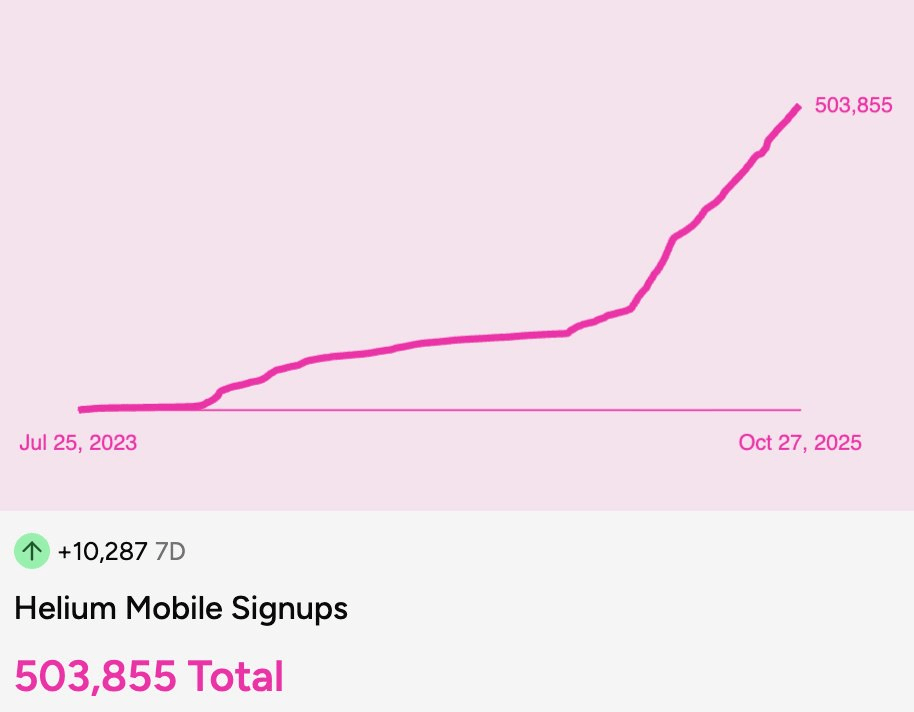 为了证实这一[激增],Helium 移动注册人数已正式达到 500,000 的里程碑,表明 DePIN 的采用率正在稳步上升。