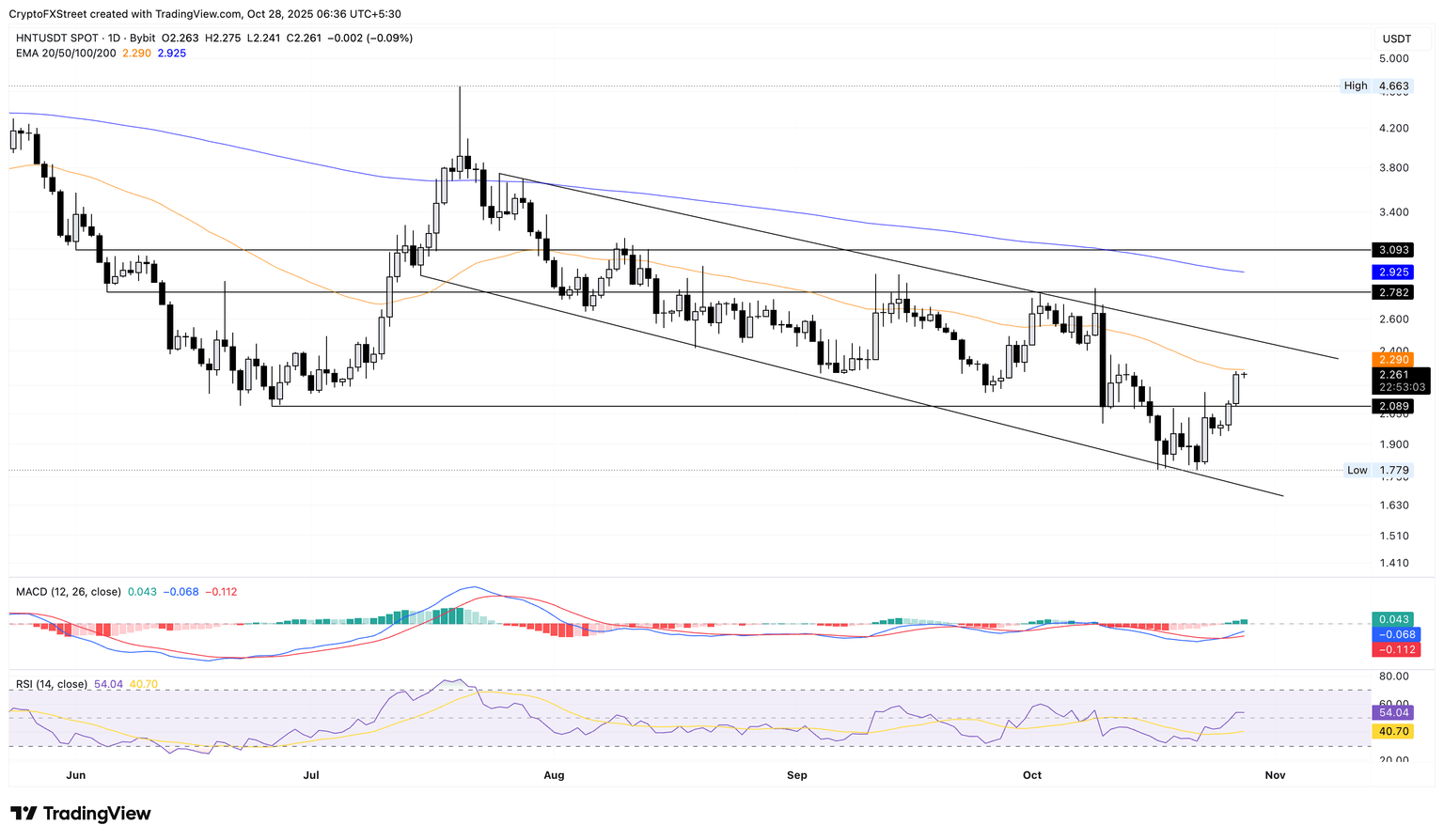 HNT/USDT 每日价格图表。