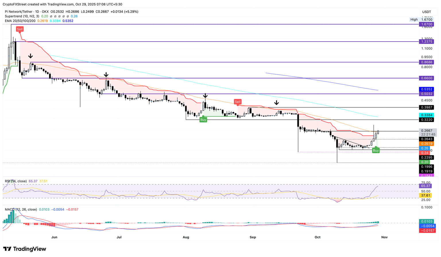 不利的一面是,PI 的关键支撑位在 0.2500 美元的整数位,其次是 10 月 11 日低点标记的 0.1919 美元基准位。