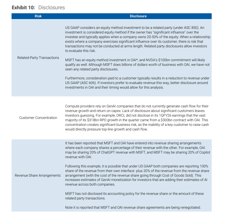 客户集中度: 供应商应更清晰地披露其对OpenAI等关键大客户的依赖程度。例如,甲骨文在其财报中并未明确指出其RPO的暴增主要来自OpenAI的单一合同。