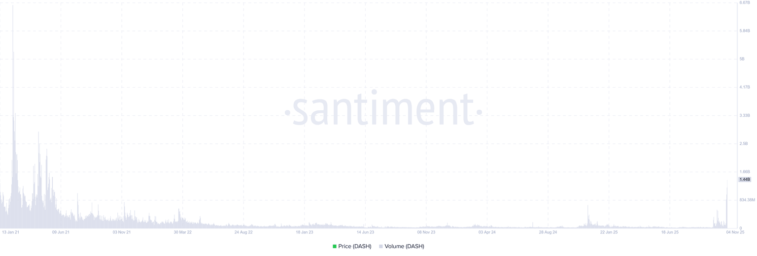 链上指标进一步表明看涨情绪前景对于这些隐私币而言,Dash 的链上交易量周二飙升至 14.4 亿美元,创下自 2021 年 5 月以来的最高水平。同样,Zcash 的交易量也攀升至 13.5 亿美元,自 9 月下旬以来持续增长。交易活动的激增凸显了交易者对这两种资产日益增长的兴趣和流动性的改善,从而增强了它们的上涨势头。