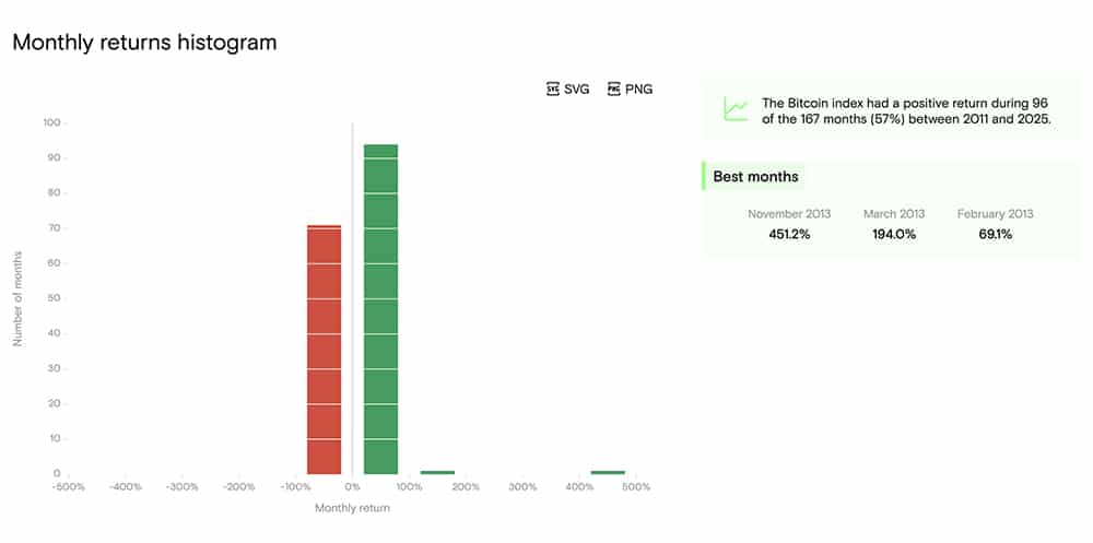 从历史数据来看,10 月份的下跌趋势并非总会延续到 11 月份。数据显示,11 月份是比特币表现最佳的月份,价格在一个月内上涨了 451.2%。虽然 10 月份通常也是比特币的好月份,但其“上涨幅度”通常不会超过 11 月份。