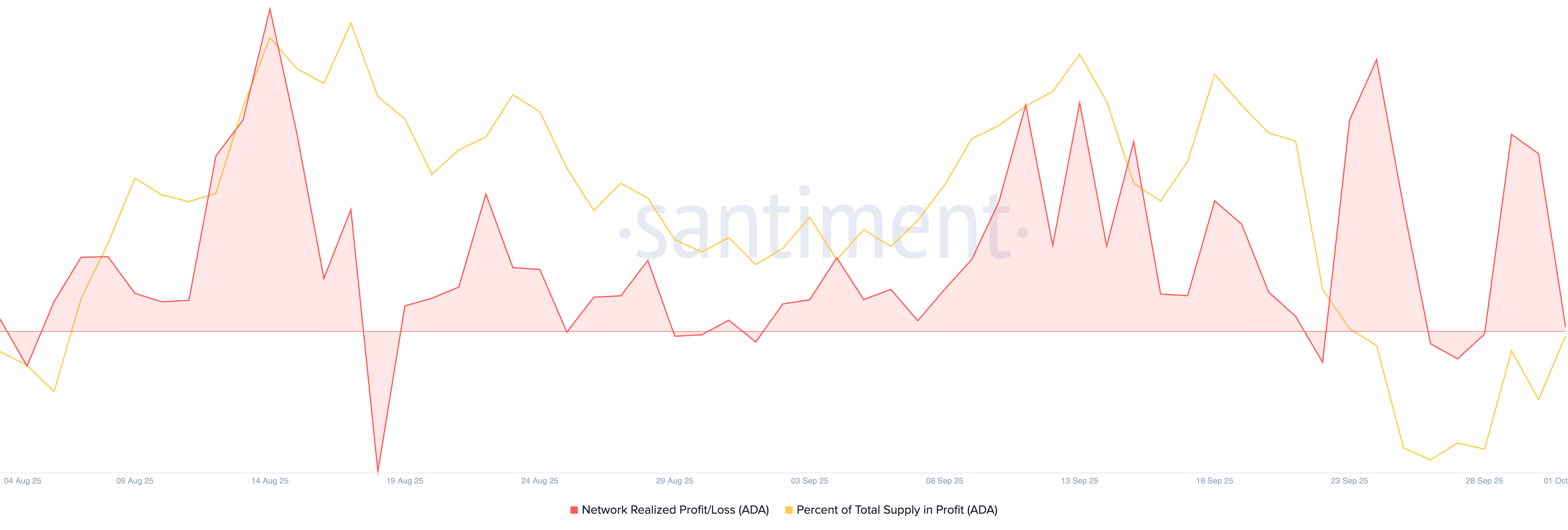 Cardano 网络实现盈利/亏损。资料来源:Santiment
