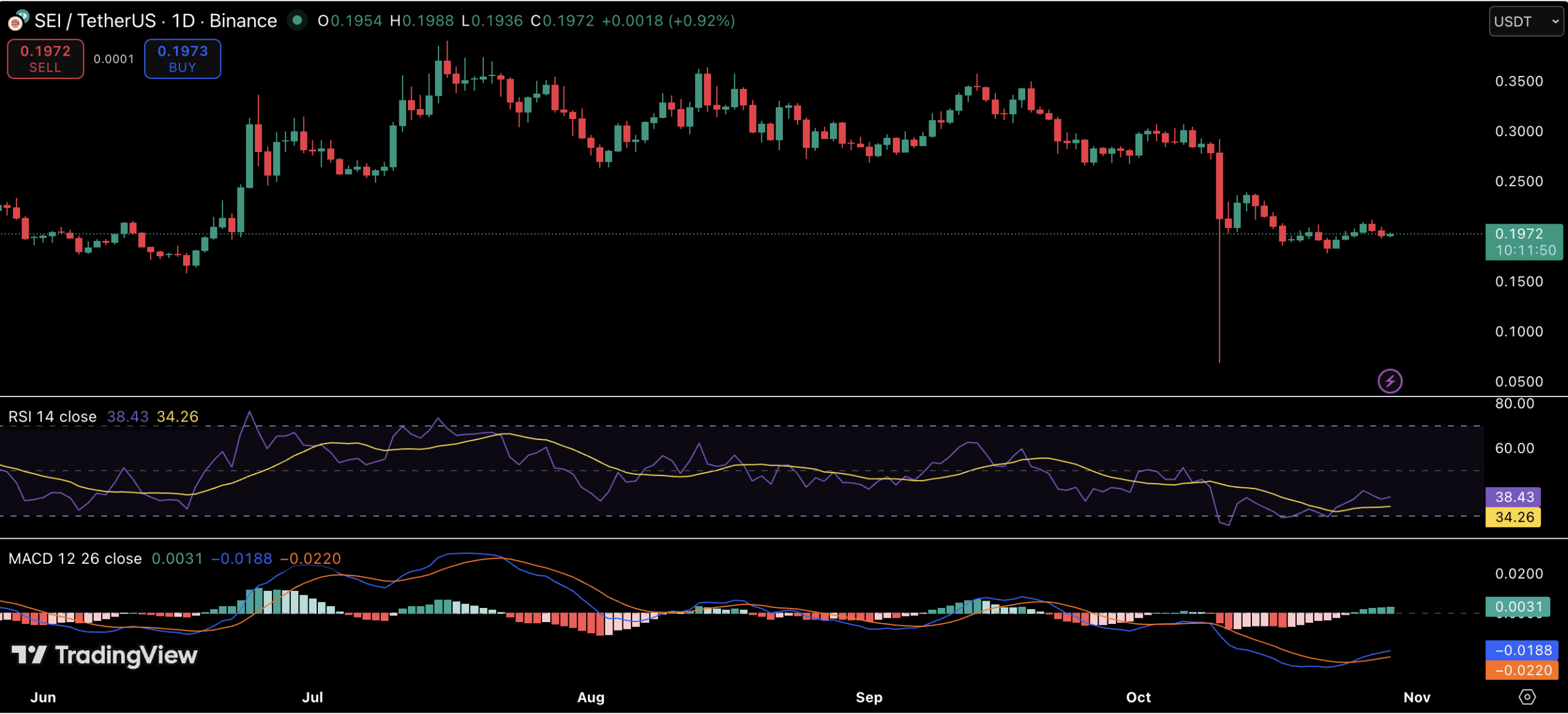 马丁内斯指出,SEI指数继续在一个宽阔的上升通道内交易,如果成交量扩大,该通道可能引导其价格向0.31美元至0.44美元区间移动。从更广泛的角度来看,尽管近期SEI指数有所波动,但它仍能守住其底部。挥发性