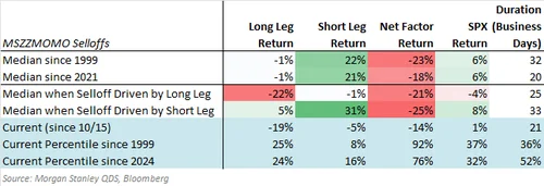 摩根士丹利量化策略团队在报告中指出,当前动量股抛售的深度与历史模式颇为相似。自高点以来,动量股多头组合已下跌19%,与此类抛售潮中-22%的历史平均跌幅基本一致。