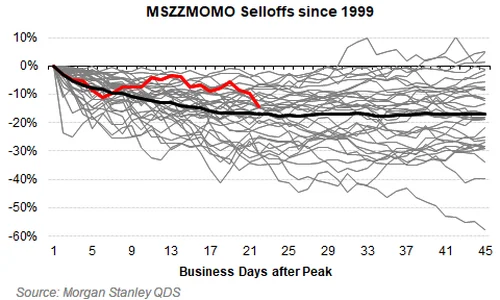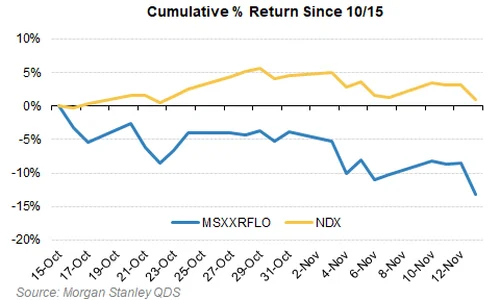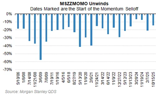 根据摩根士丹利的报告,自10月15日触顶以来,由多空策略构成的动量指数已下跌超过14%。