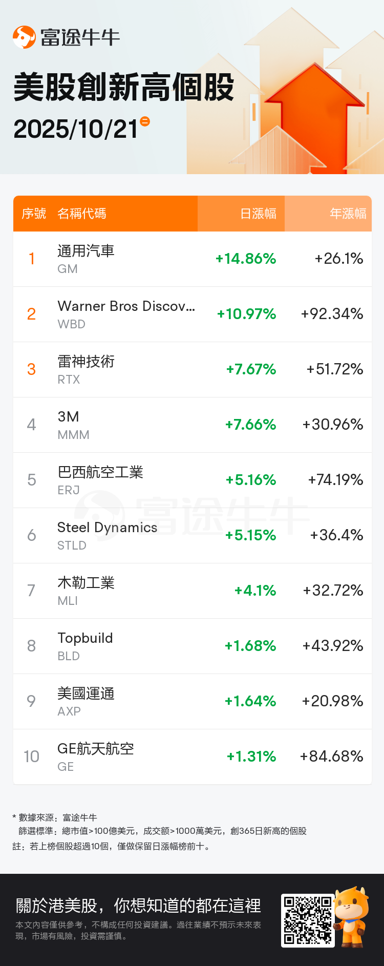 上调全年业绩指引,关税前景改善推动股价飙升, $通用汽车 (GM.US)$ 隔夜涨近15%创历史新高