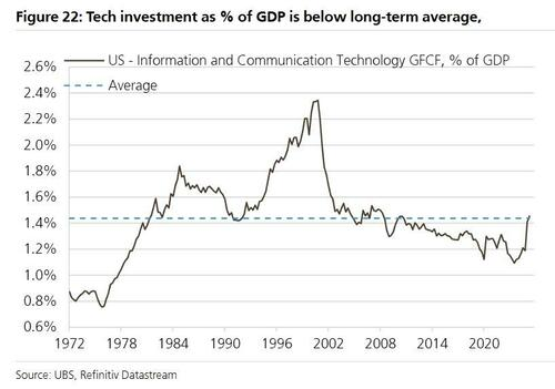 2、长周期见顶催化剂:报告指出,多个长期指标也未显示见顶迹象。首先,信息和通信技术(ICT)投资占GDP的比重远低于2000年水平,未出现明显的过度投资。