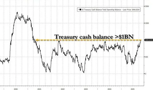 流动性紧张的根本原因,在于美国财政部一般账户(TGA)余额在过去三个月的急剧膨胀。为应对政府关门,财政部从市场抽走了超过7000亿美元的现金,使其TGA余额自7月以来从约3000亿美元飙升至突破1万亿美元。