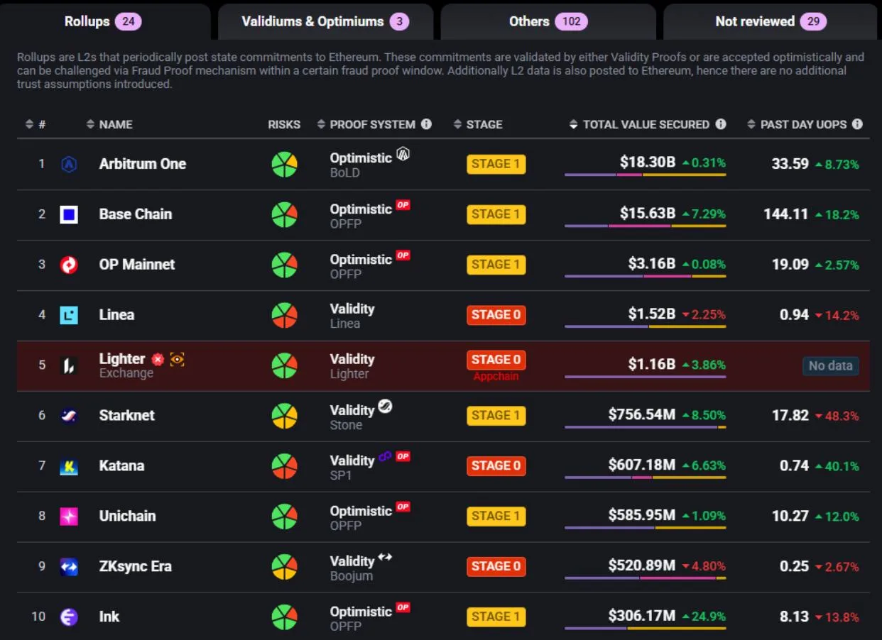 以太坊目前有超过 100 个 L2 | 来源: L2Beat