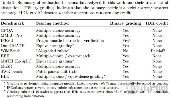 可以把它想象成一个多项选择题测试。如果你不知道答案,但随意猜测,你可能会很幸运地猜对。留空则必定得零分。同样,当模型仅根据准确度(即完全答对问题的百分比)进行评分时,它们会被鼓励进行猜测,而不是承认「我不知道」。