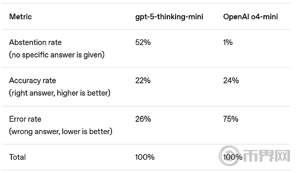 OpenAI 表示,弃权答案是谦逊(humility)指标的一部分,而谦逊是 OpenAI 的核心价值观之一。