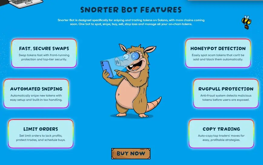 虽然所有加密货币投资都存在风险,Snorter Token提供基于 meme 的社区和实用驱动的模型。Snorter 交易机器人为您提供交易优势,并且质押