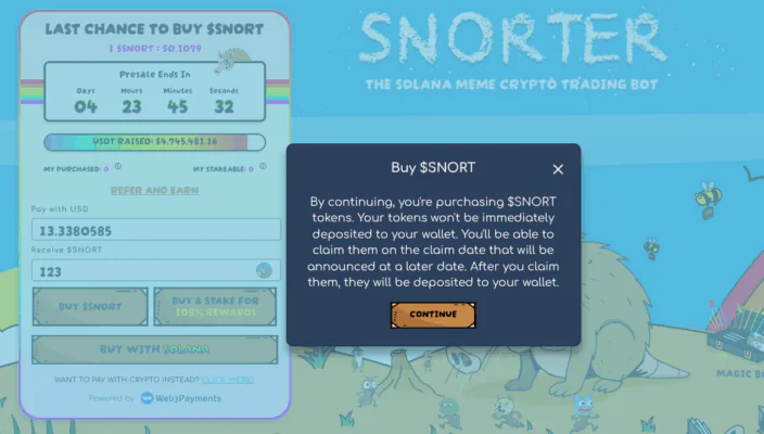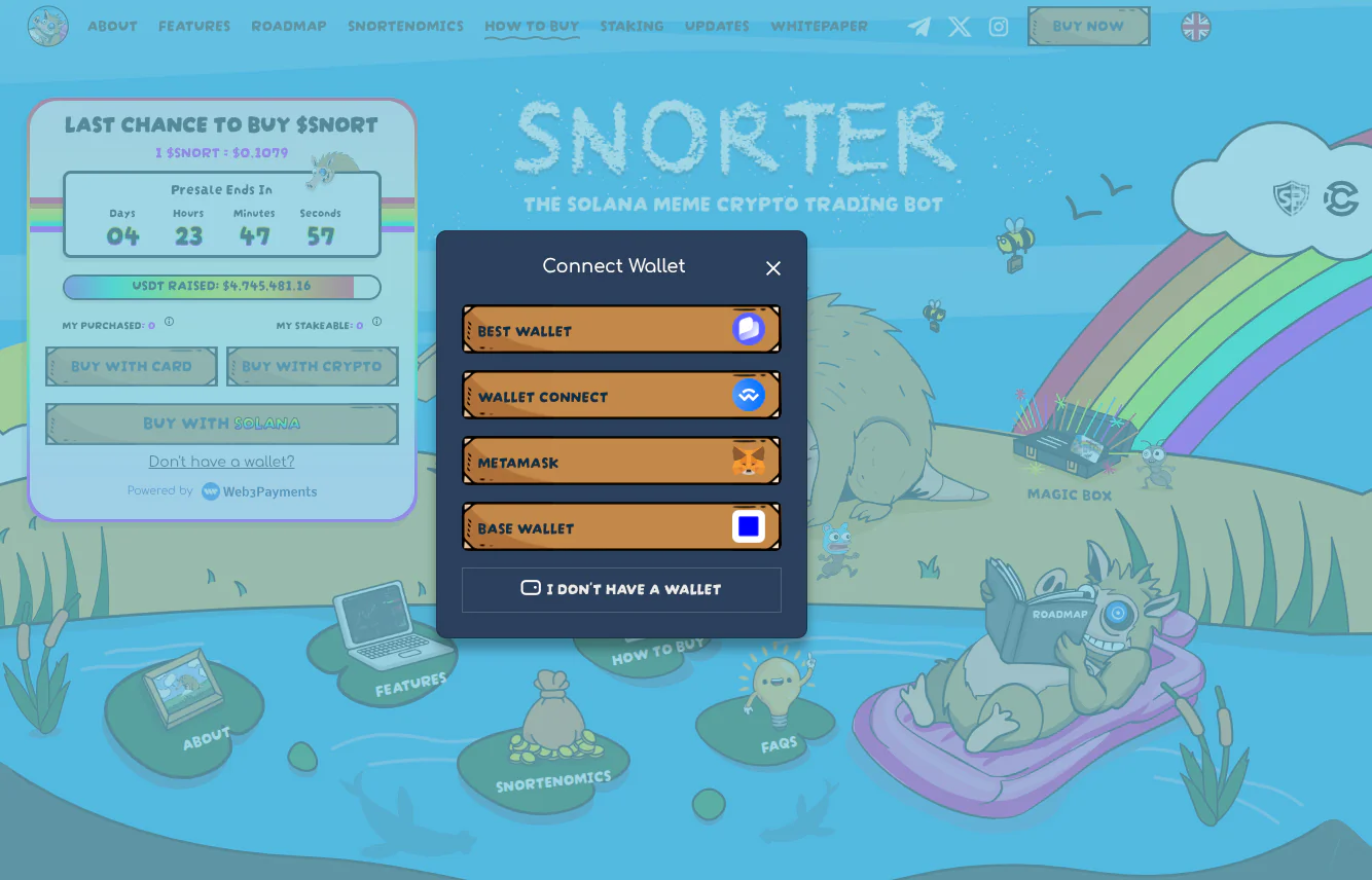 前往Snorter Token ($SNORT) 官方预售网站。为了确保你不会买到仿品网络钓鱼