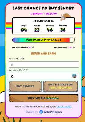 Snorter 代币预售是一个参与将 meme 文化与现实世界实用性相结合的项目的机会。现在购买,您不仅仅是投资;您还能确保以较低的入场价格,为潜在收益做好准备,并通过质押获得被动收入。