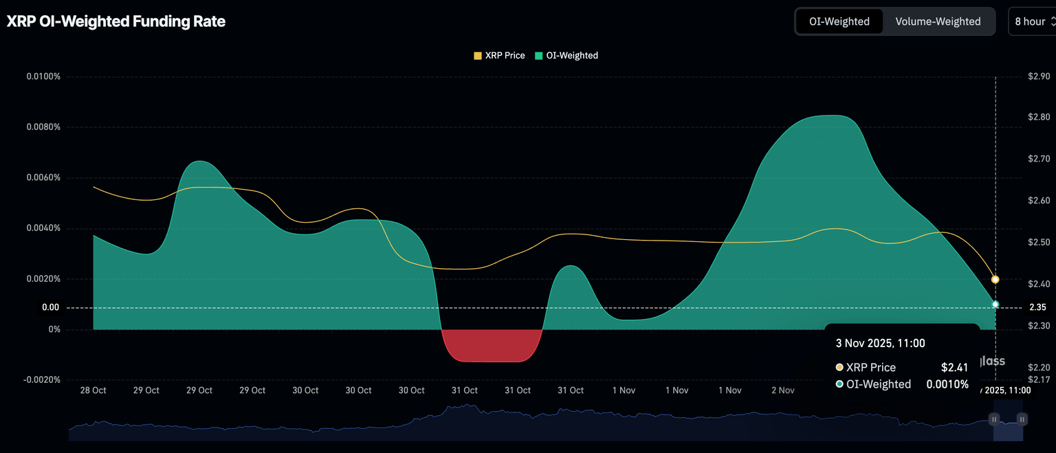 XRP 未平仓合约加权资金费率 | 来源:CoinGlass
