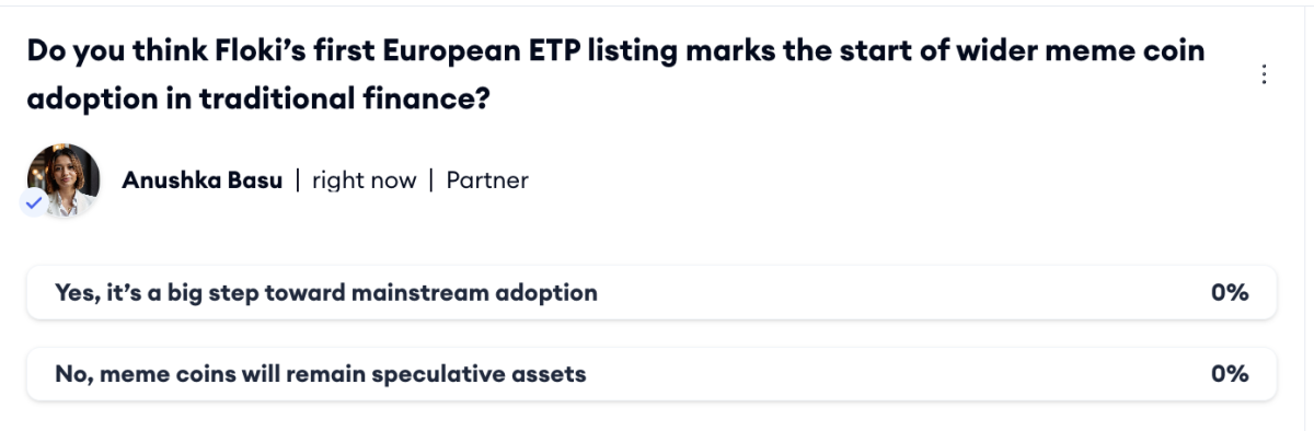 ETP 的推出使 Floki 成为链上社区与传统金融之间的桥梁。其他 meme 币项目可能会受到启发,寻求类似的上市方式,尤其是在越来越多的欧洲监管机构的兴趣以及投资者对加密货币风险的监管。