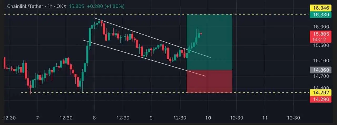 “>DeFi通过受监管的基础设施。短期来看,Chainlink 突破了 15.50 美元的阻力位,吸引了众多交易者的关注,他们正密切关注价格走势的走向。如果该价位能够守住,且买盘持续,Chainlink 的潜在目标价位可能达到 16.50 美元甚至更高。目前的价格走势表明买家正在入场,而与 SBI 的合作也为价格提供了除技术面之外的基本面支撑。